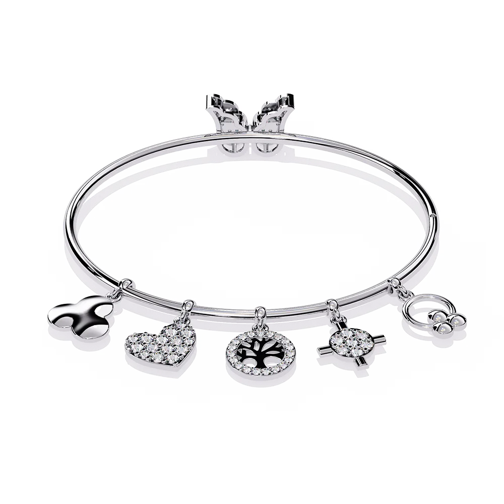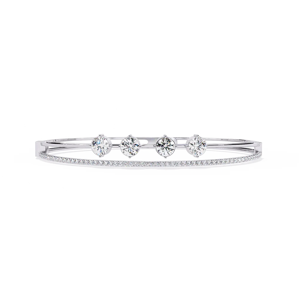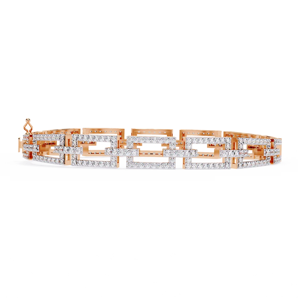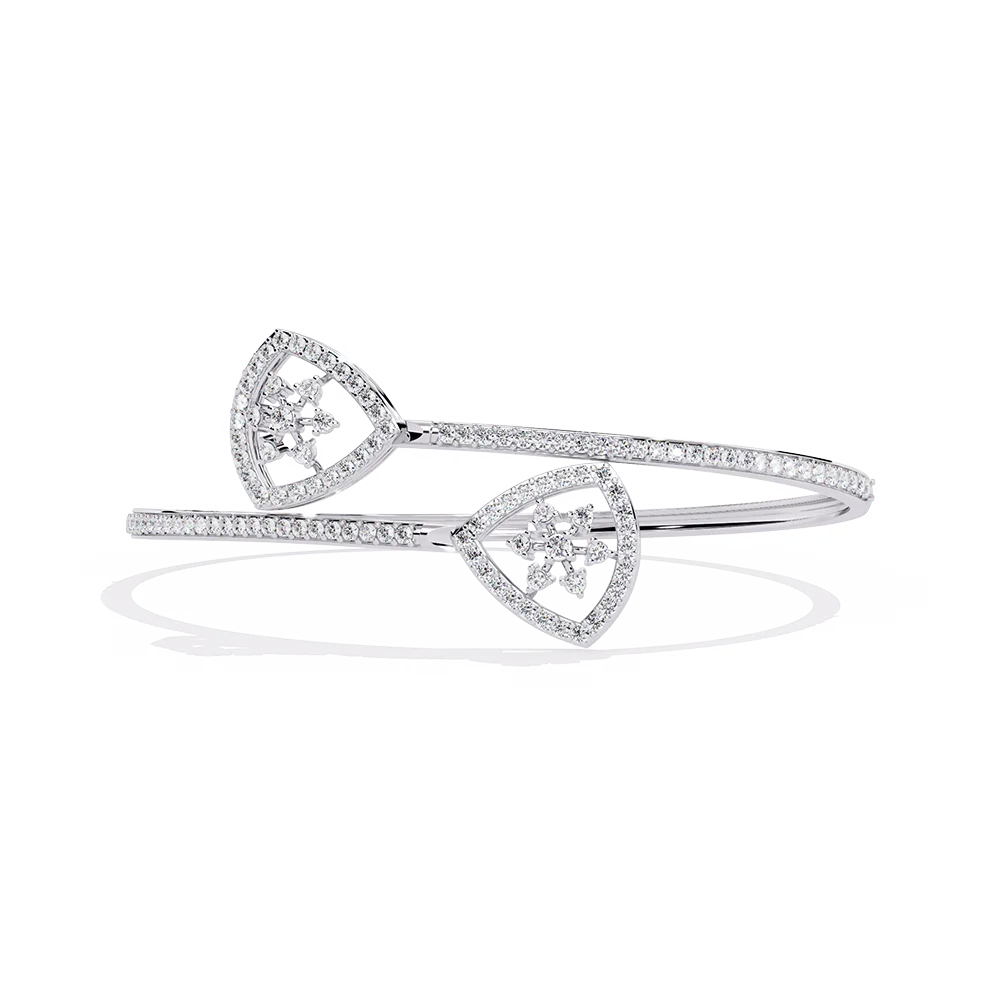 A stiff bracelet featuring interlocking diamond-studded motifs, symbolizing boldness.