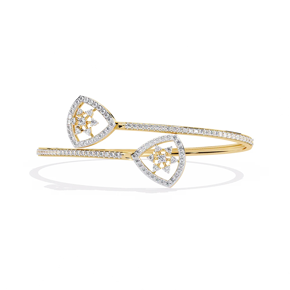 A stiff bracelet with pavé-set diamond panels for a contemporary edge.