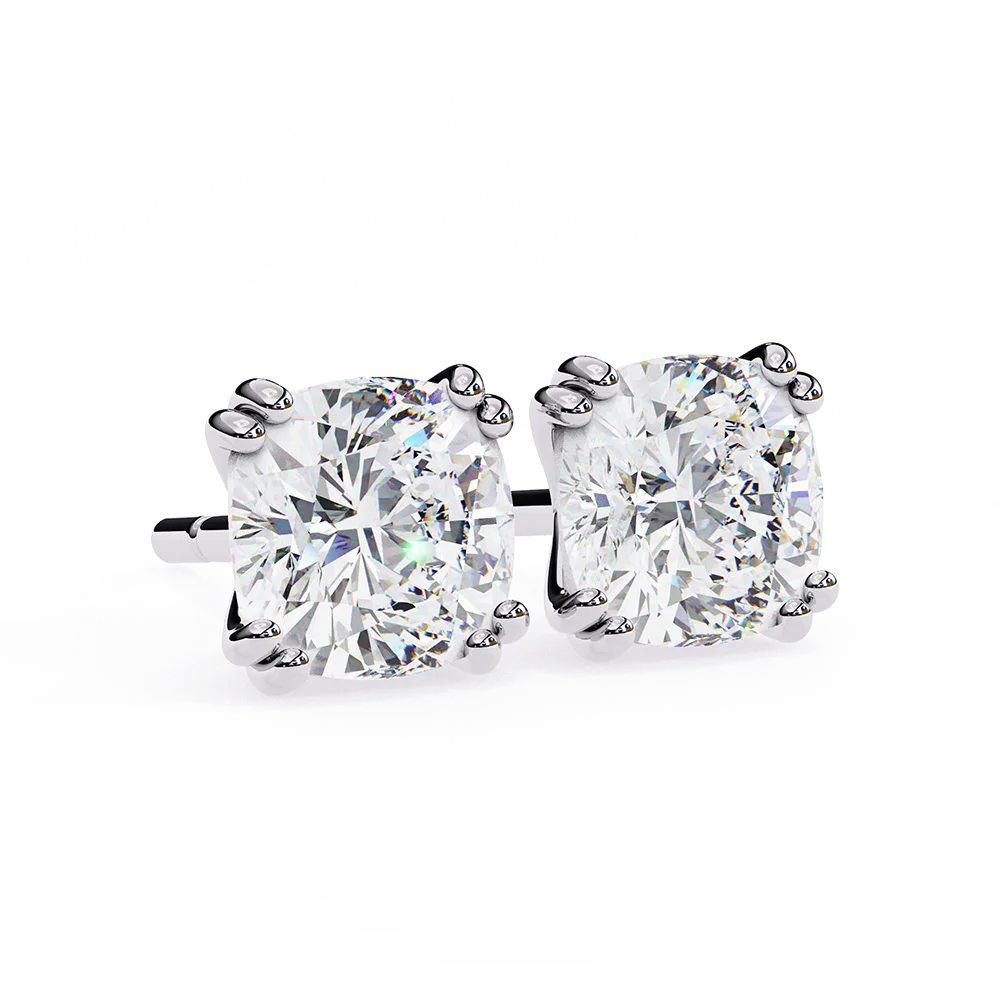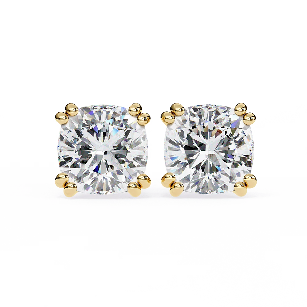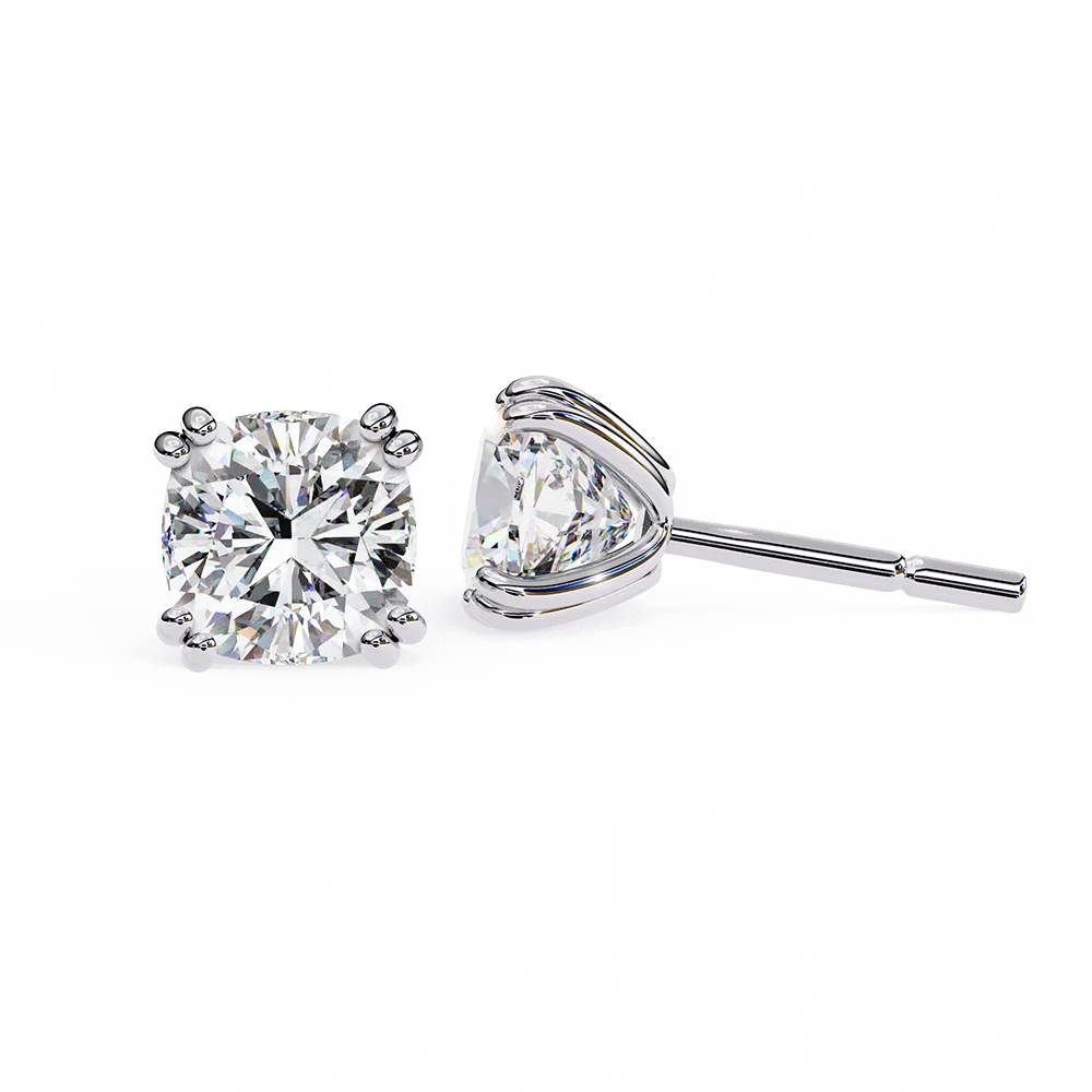 Elegant Cushion Solitaire Earrings radiating classic brilliance with double prongs.