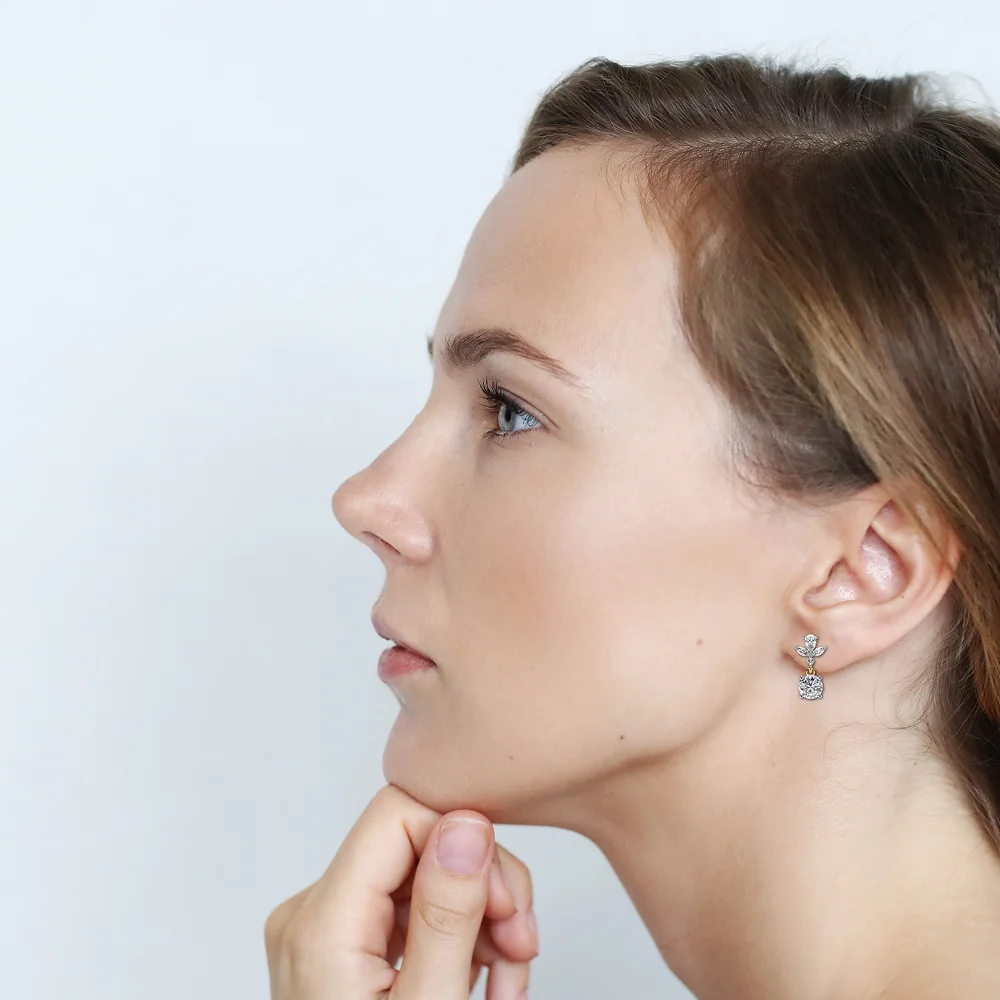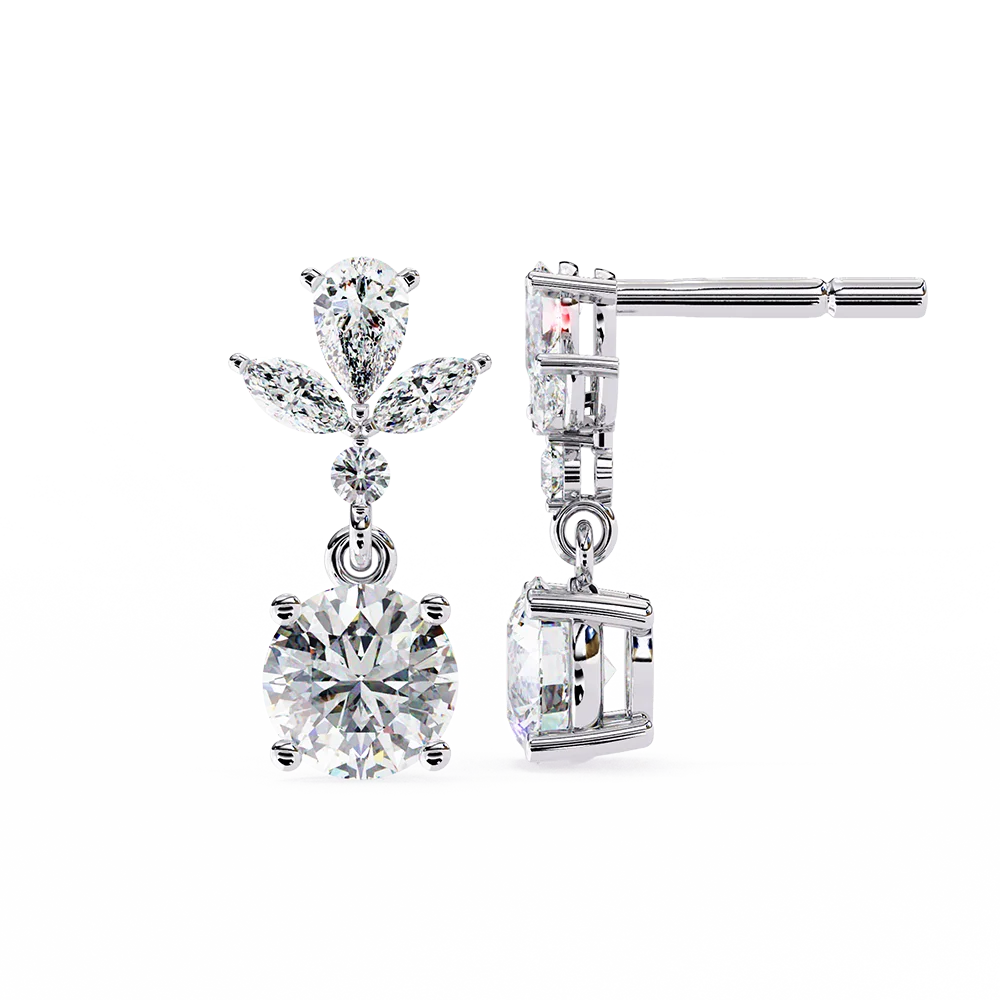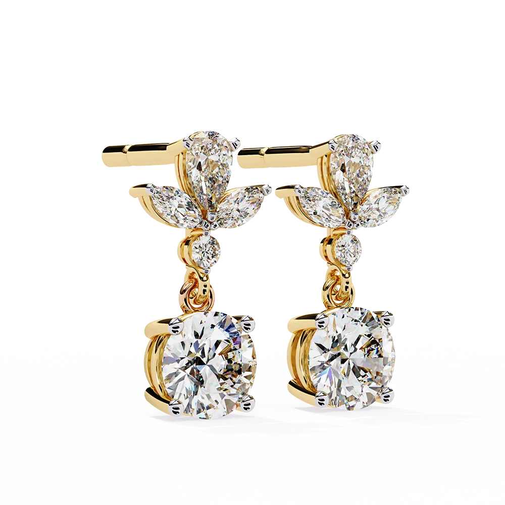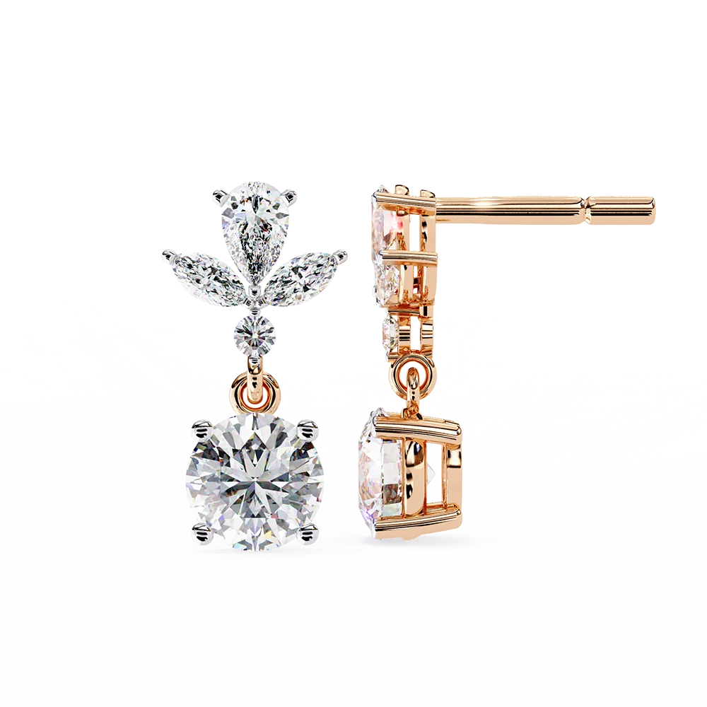 Floral-inspired dangling solitaire earrings, radiating elegance and charm with fancy studs.