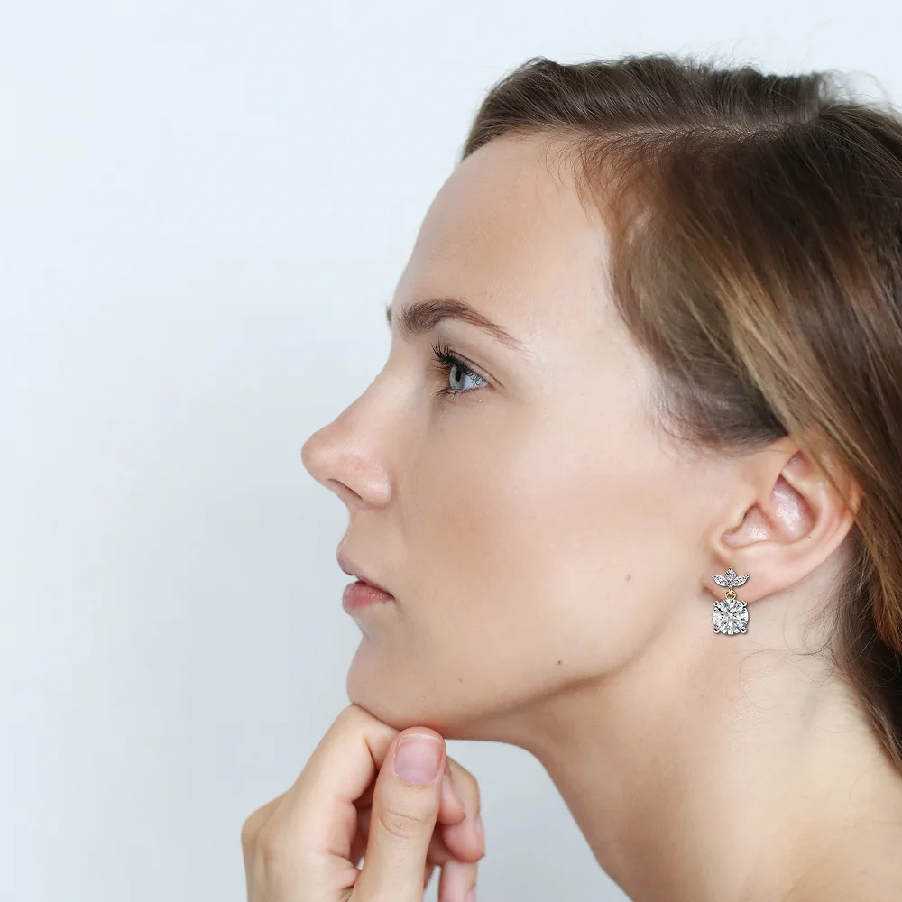 Graceful dangling solitaire earrings, shimmer with timeless allure.