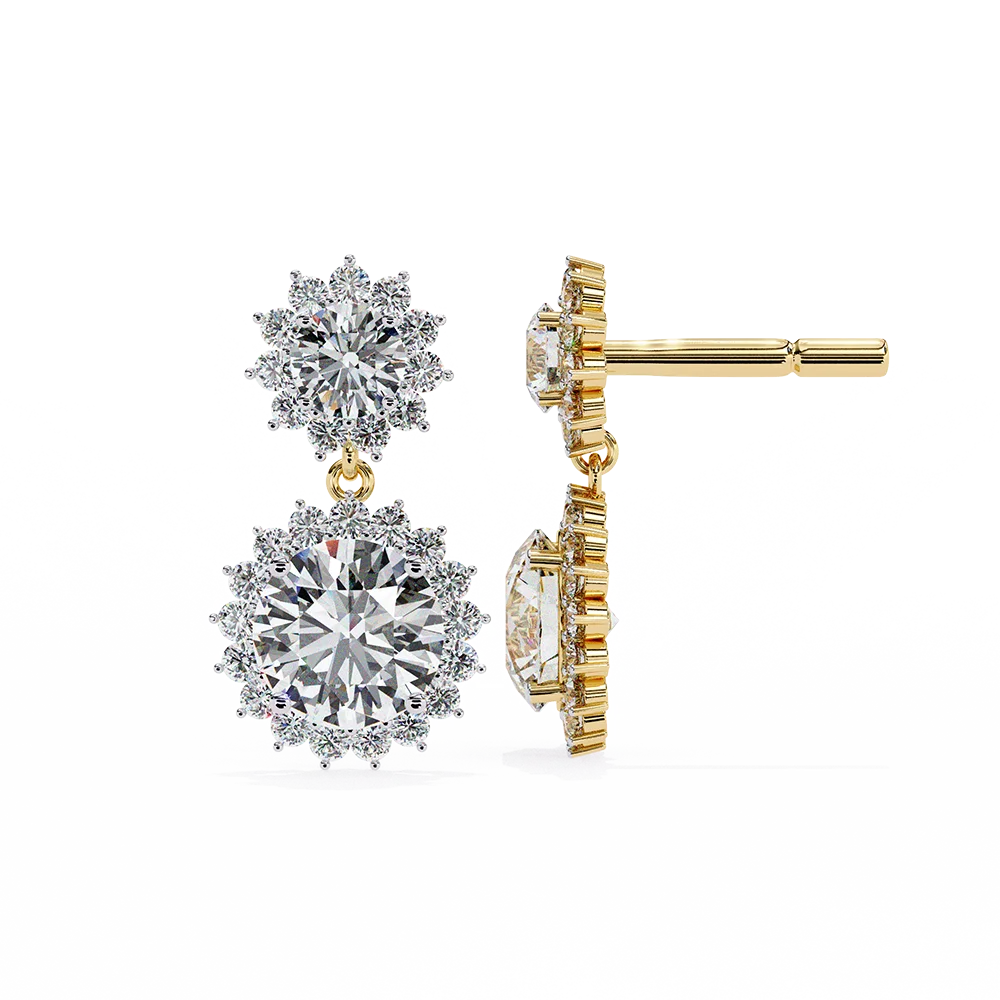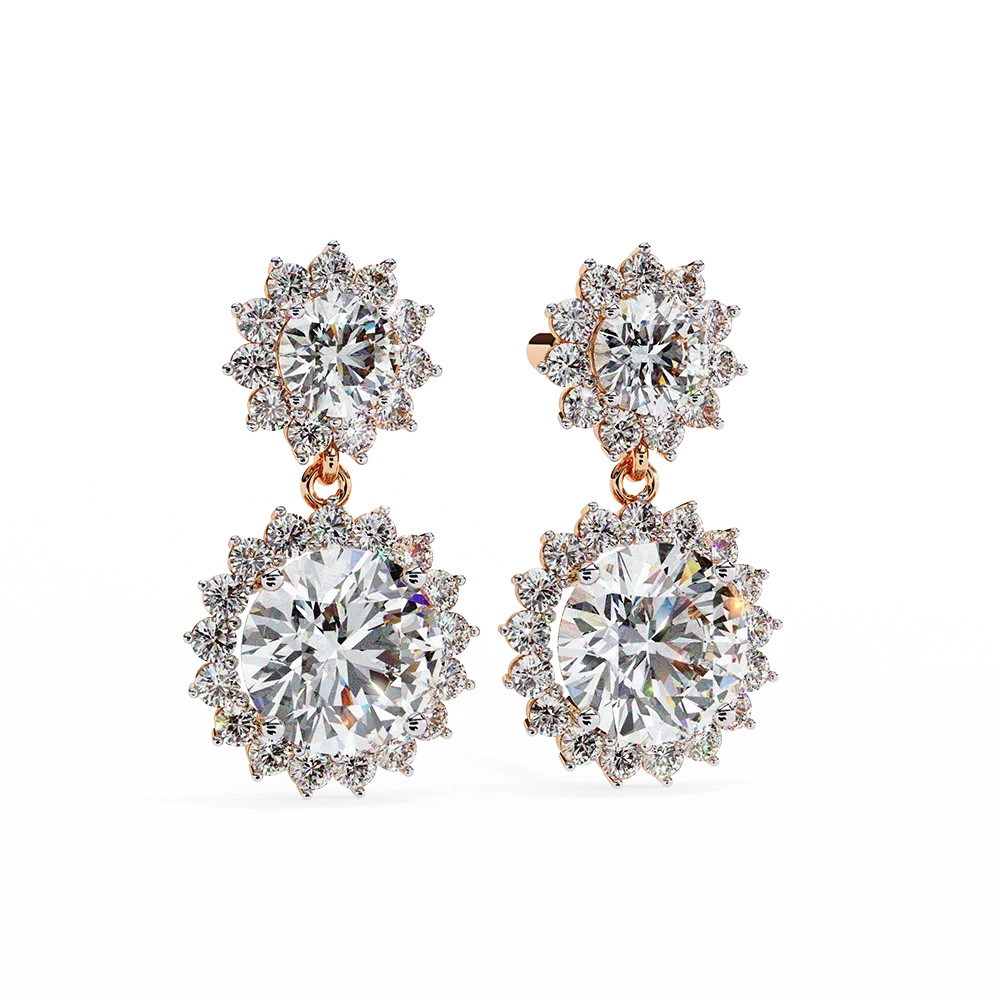 Dazzling double-clustered solitaire earrings blooming with floral brilliance.