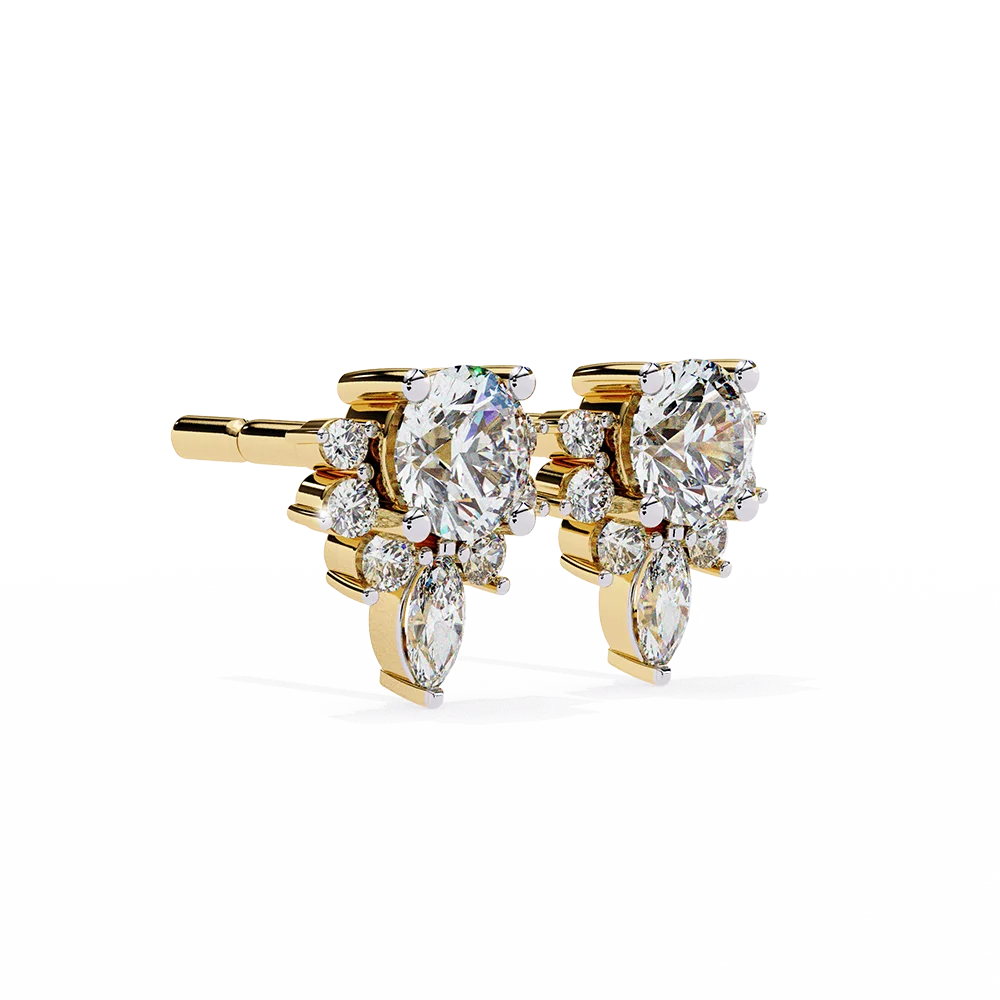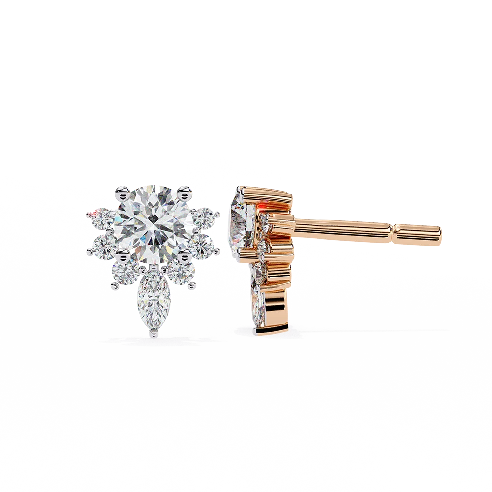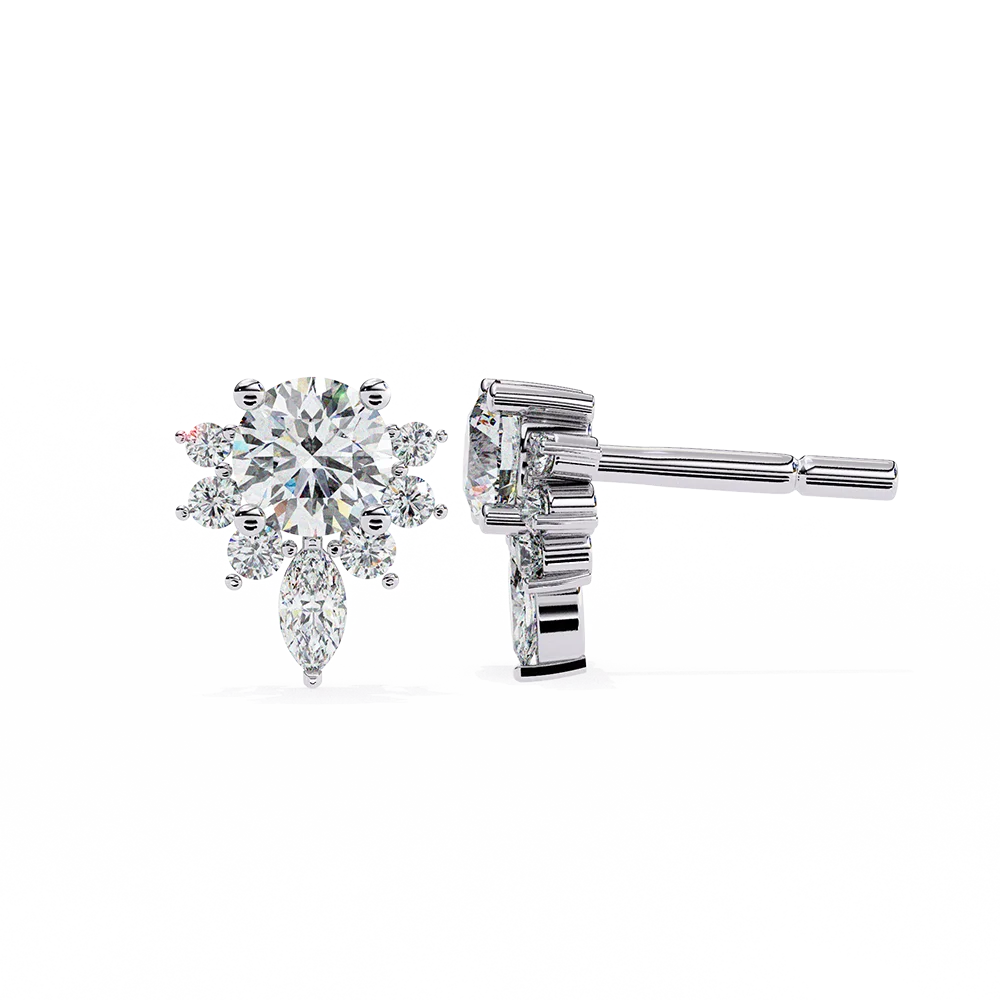 Diamond Studs with a round centre stone accented by marquise and round diamonds for a graceful sparkle.