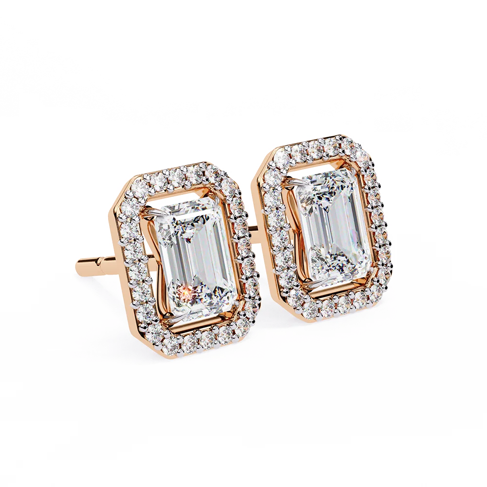 Halo Emerald Cut Earrings