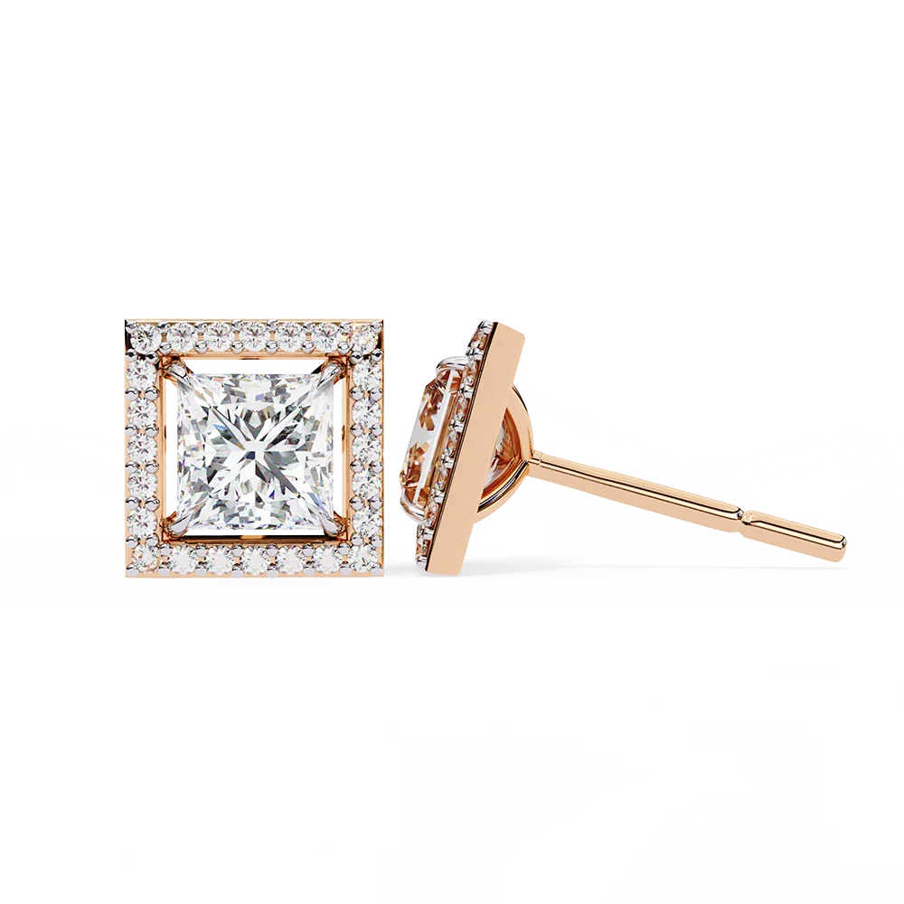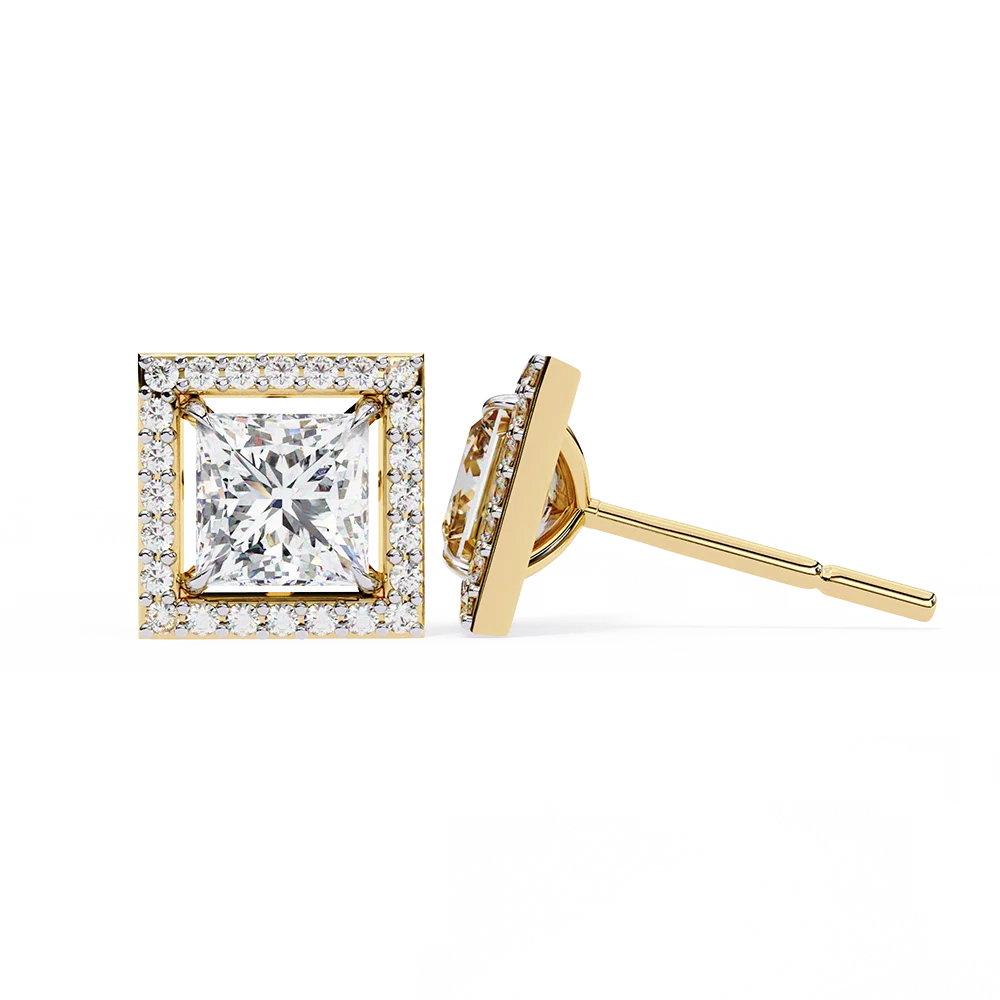 Sparkling Princess-Cut Halo Earrings with timeless brilliance.