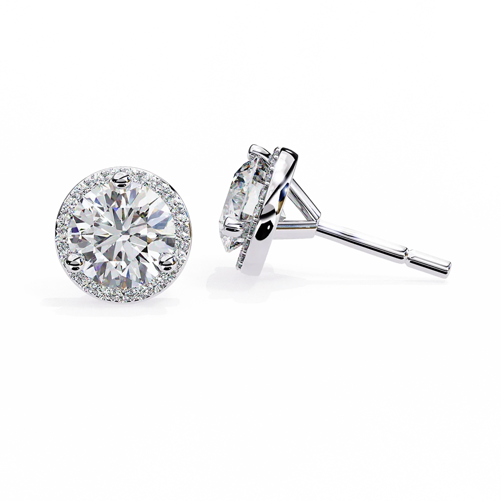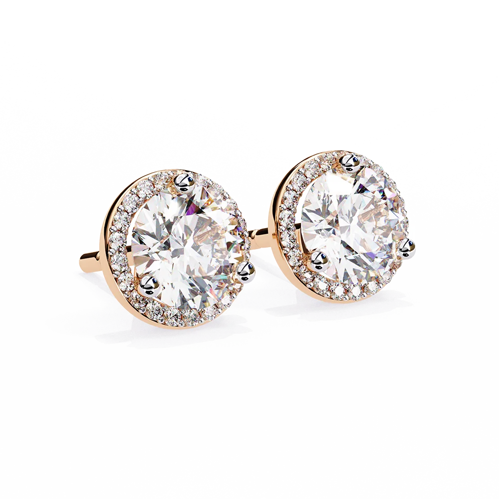 Radiant Close Halo Round Diamond Studs crafted for refined sparkle.