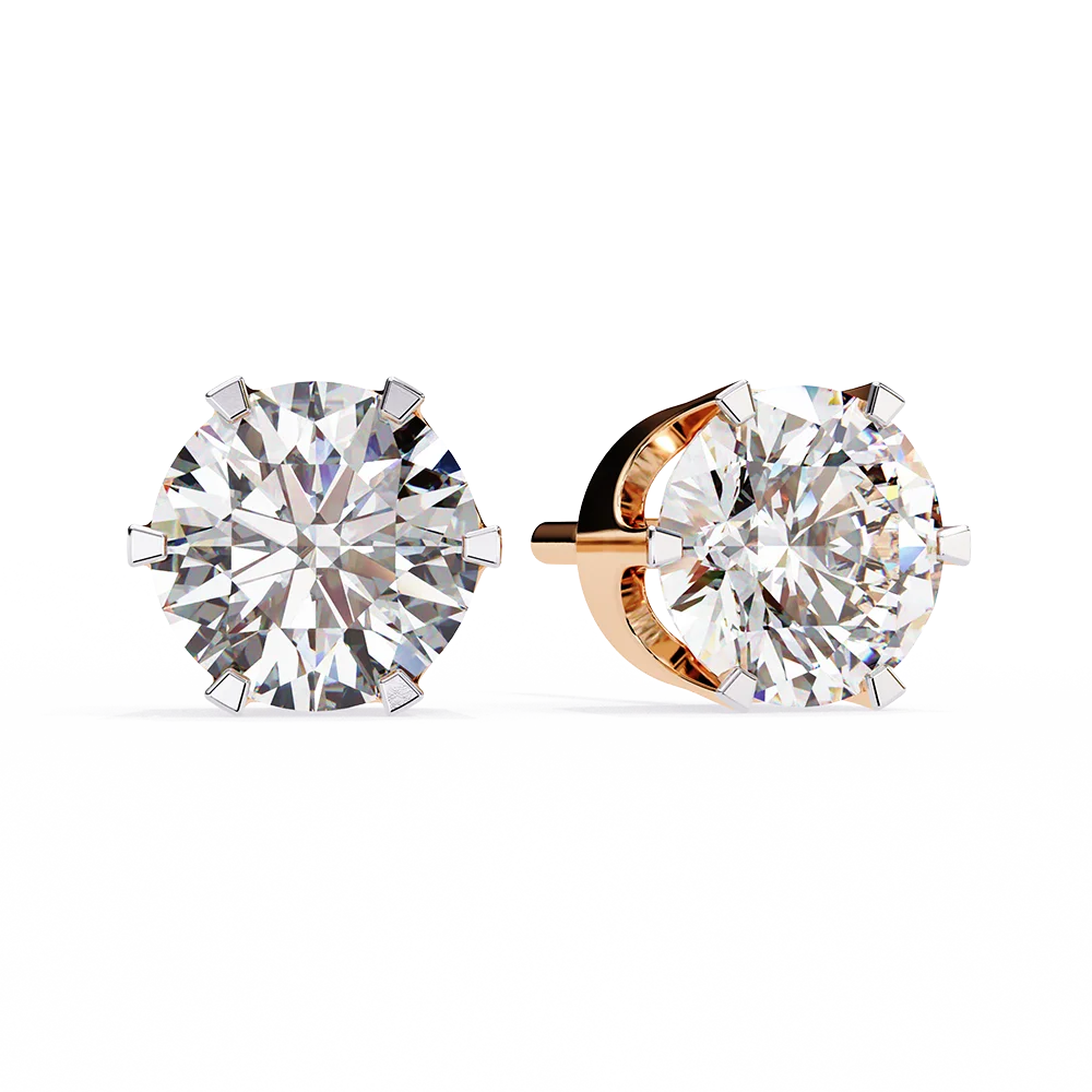 Round diamond stud earrings in a classic 6-prong gold setting.