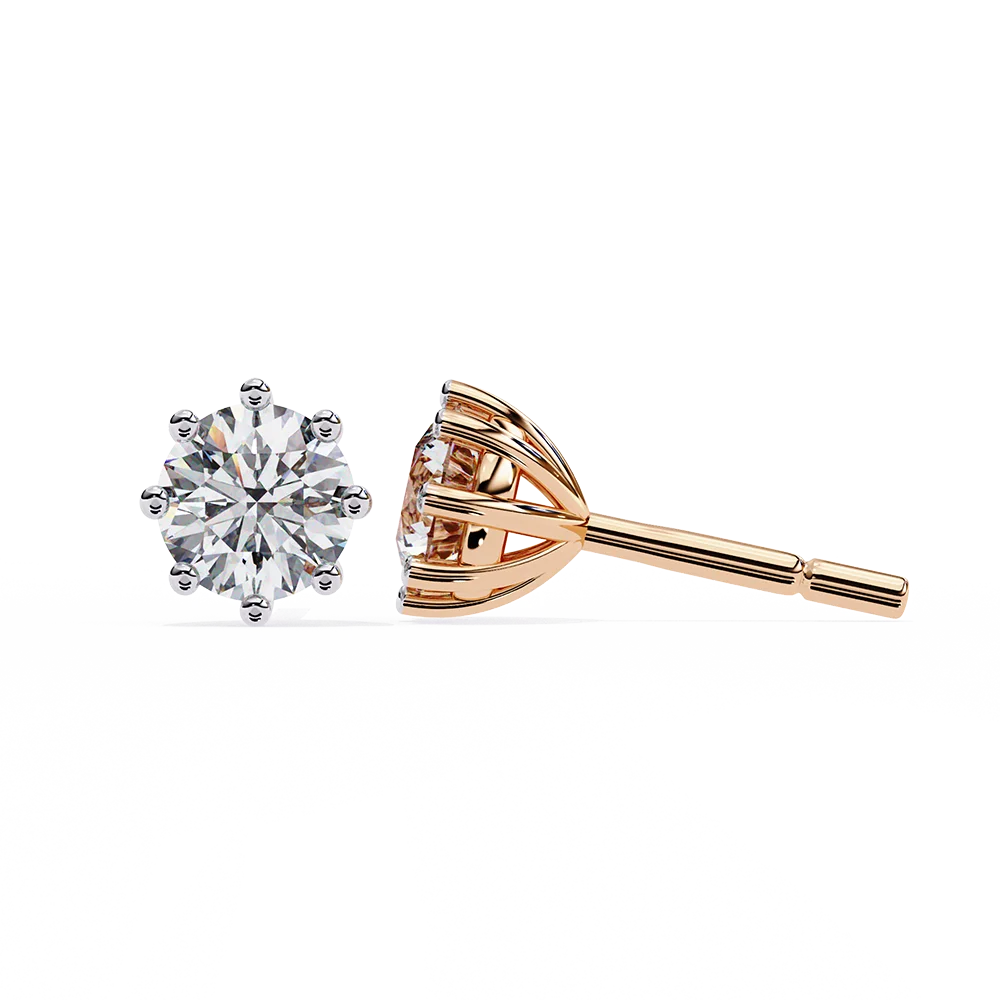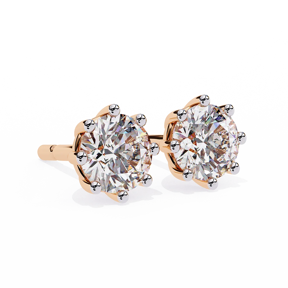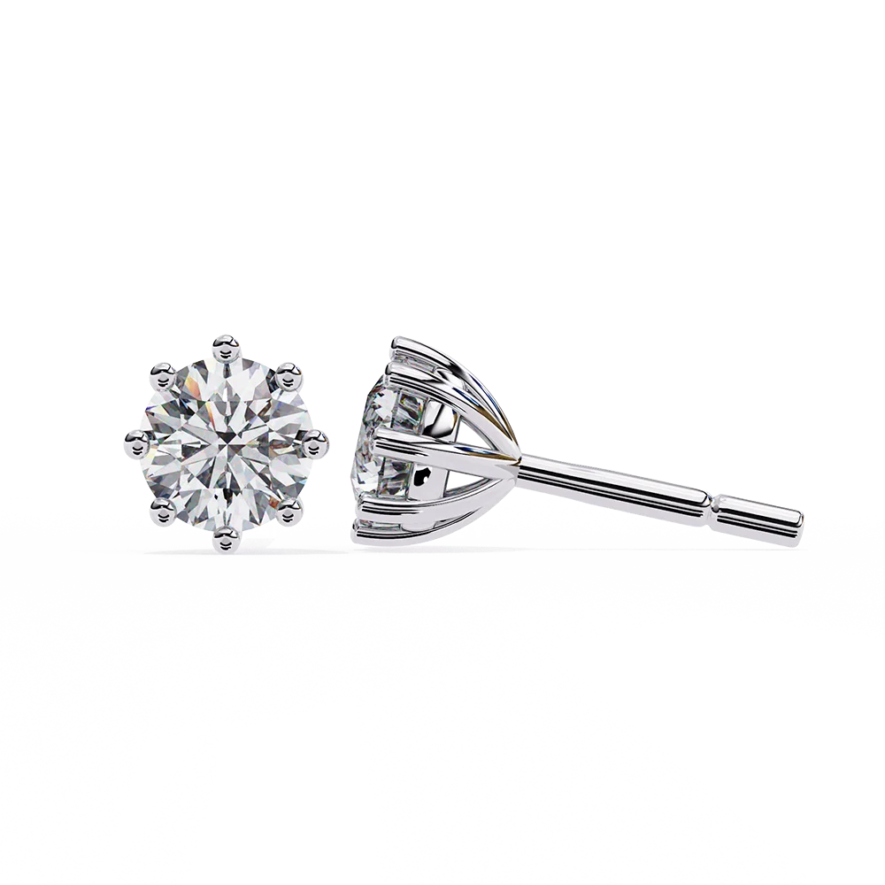 Radiant round diamond studs secured in a bold 8-prong crown setting.