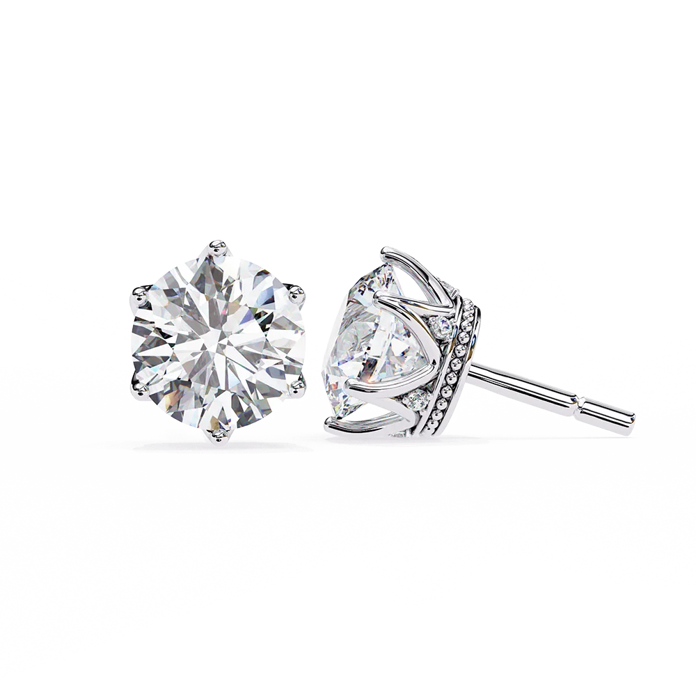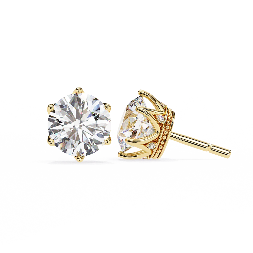 Elegant round-cut diamond stud earrings set in a delicate gold prong setting.