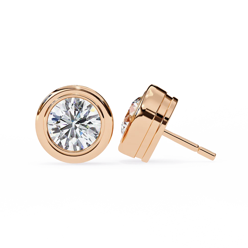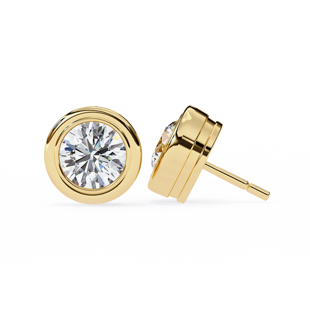 bezel-set round diamond stud earrings in a modern gold design.