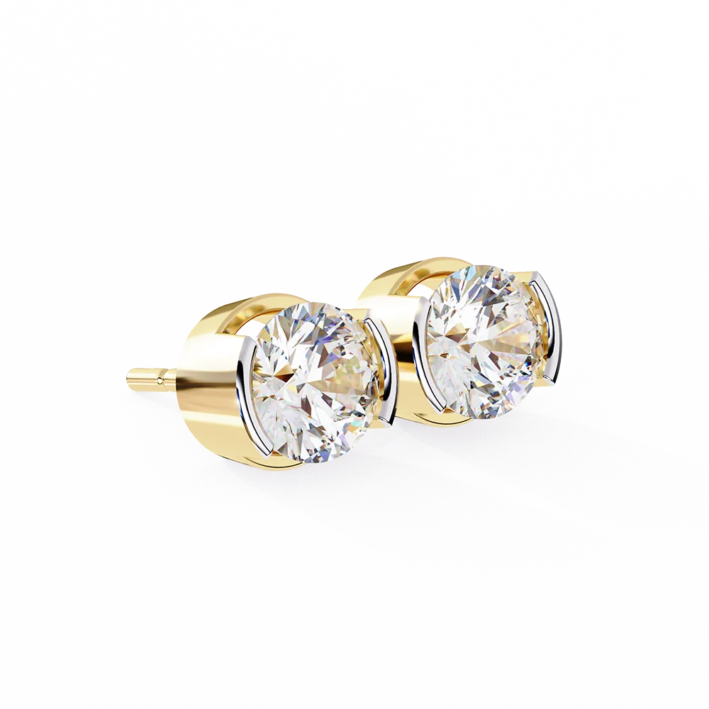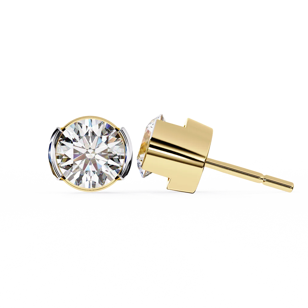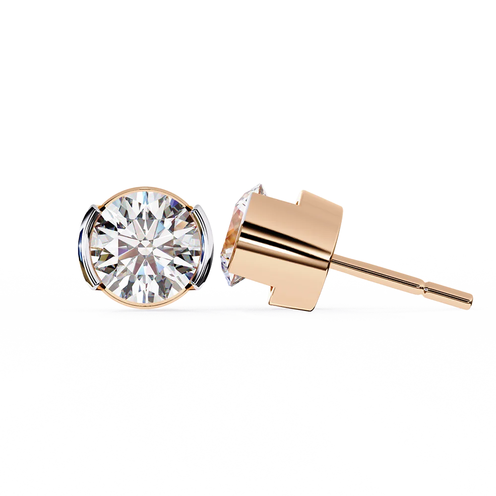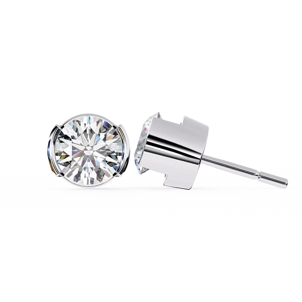 Modern round diamond earrings with a sleek bar-set white gold design.
