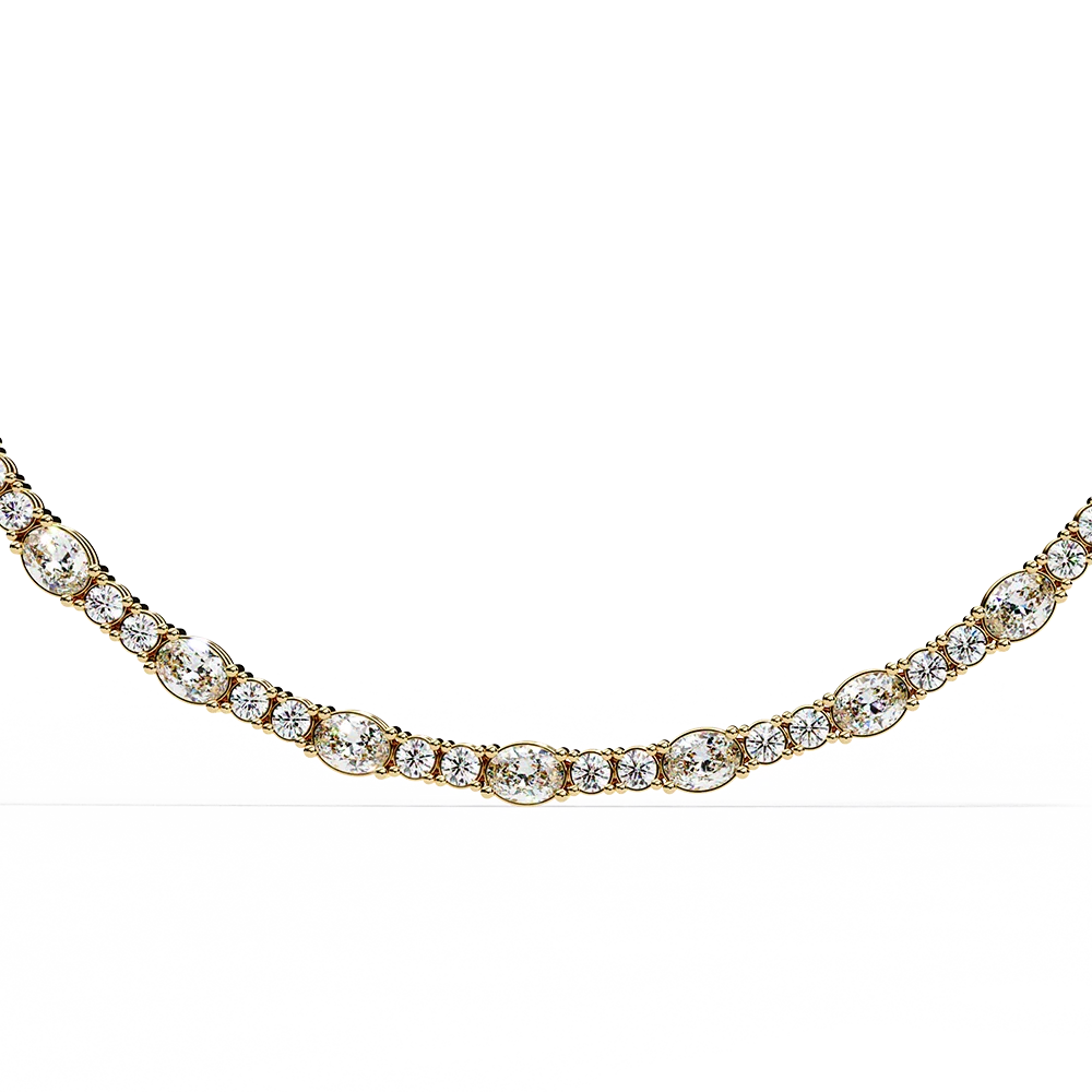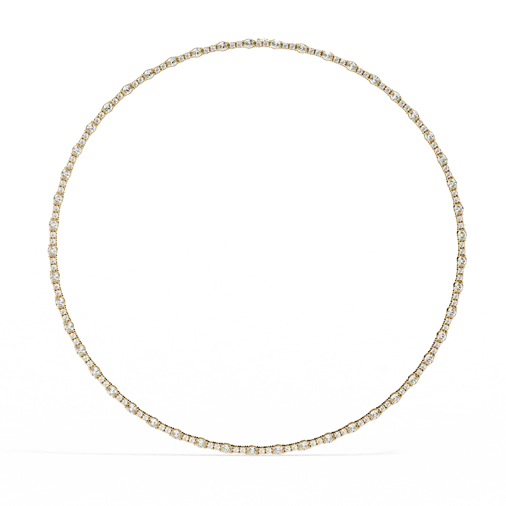 Stylish tennis necklace with alternating big and small diamond brilliance.