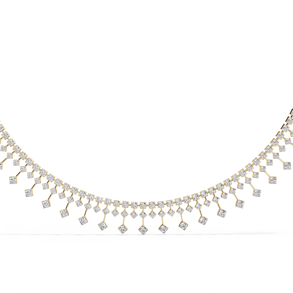 Contemporary necklace featuring collet-set sparkling diamonds.