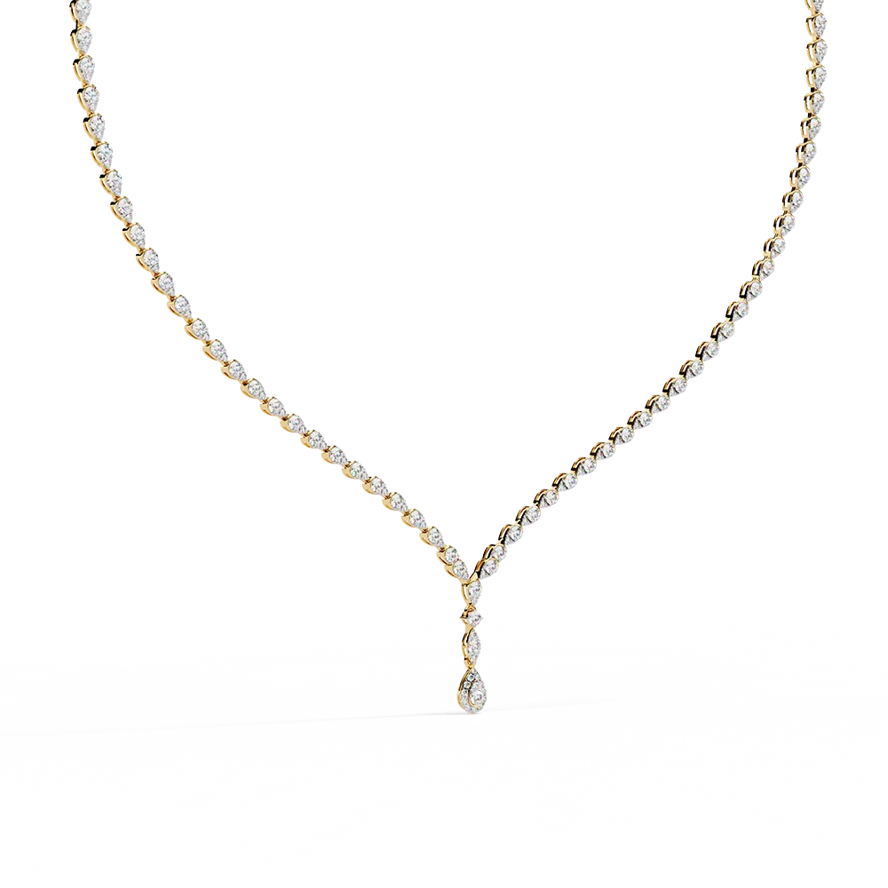 Statement necklace with sharp elegance of drop diamond craftmanship.
