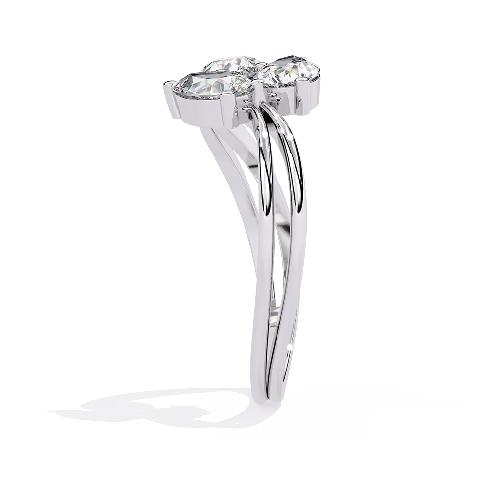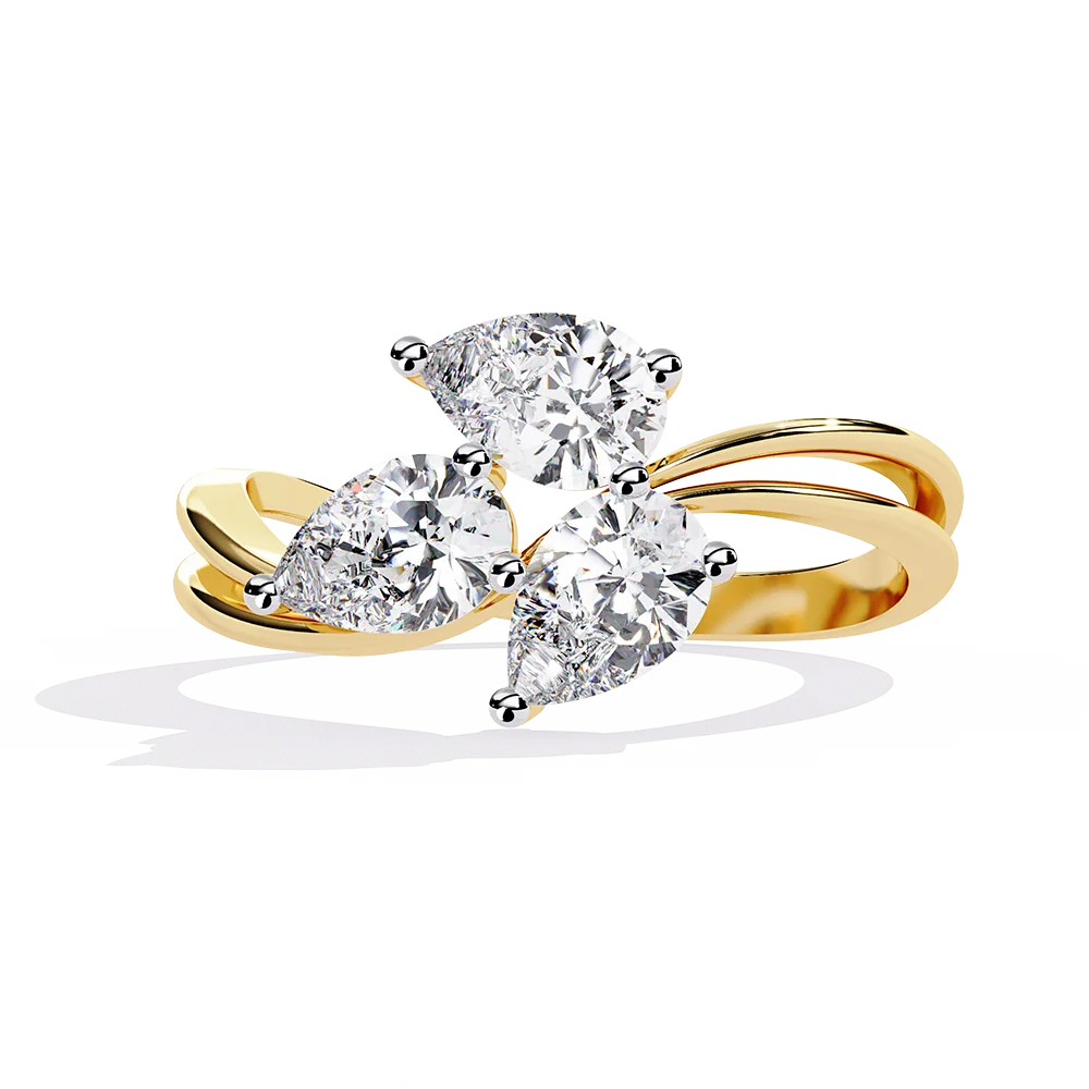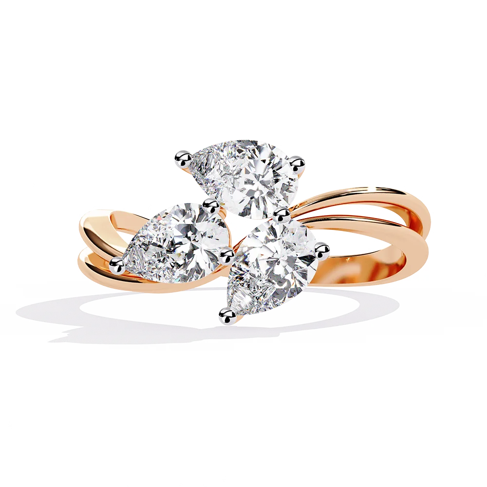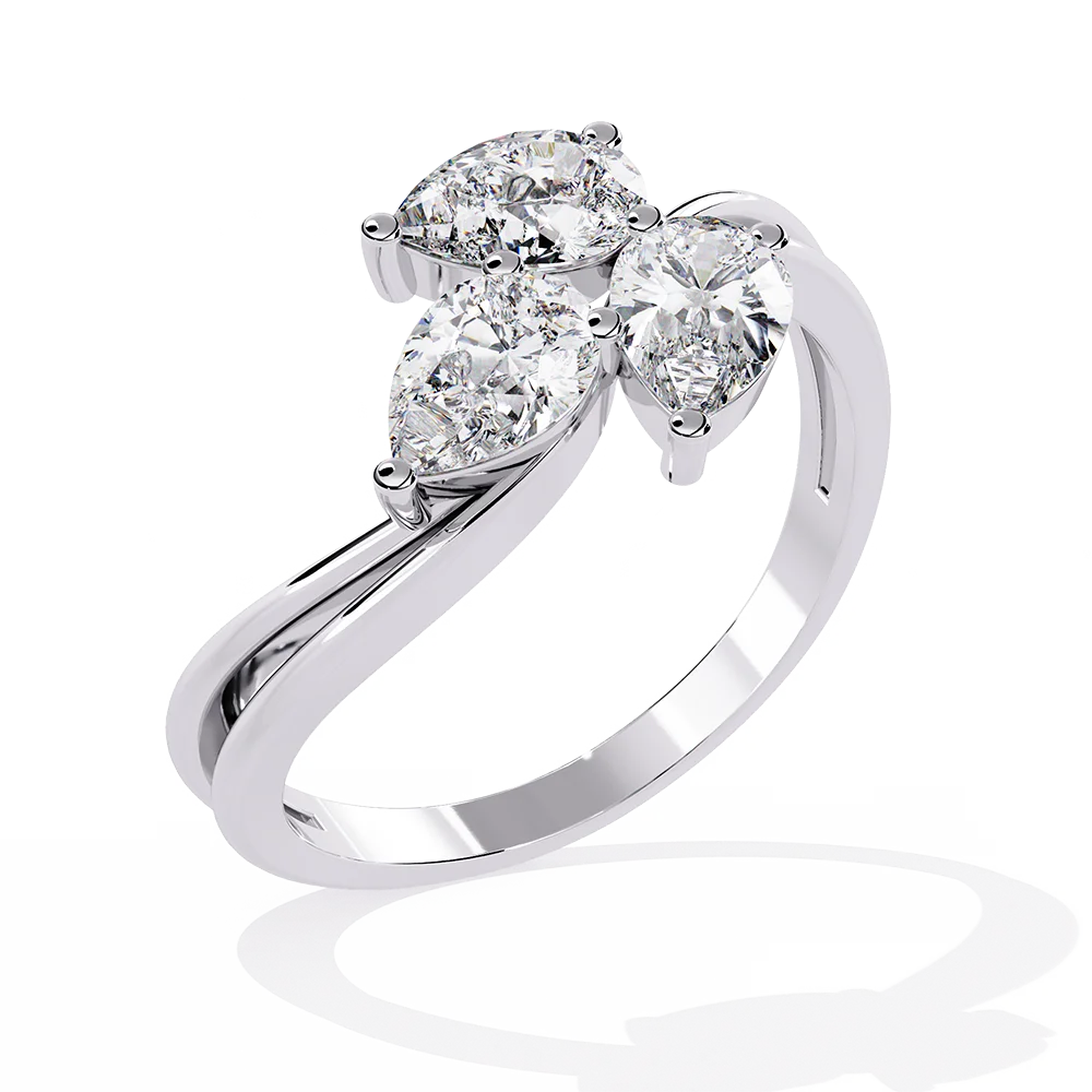 Ring with delicate trio of pear diamonds forming a leafy motif.