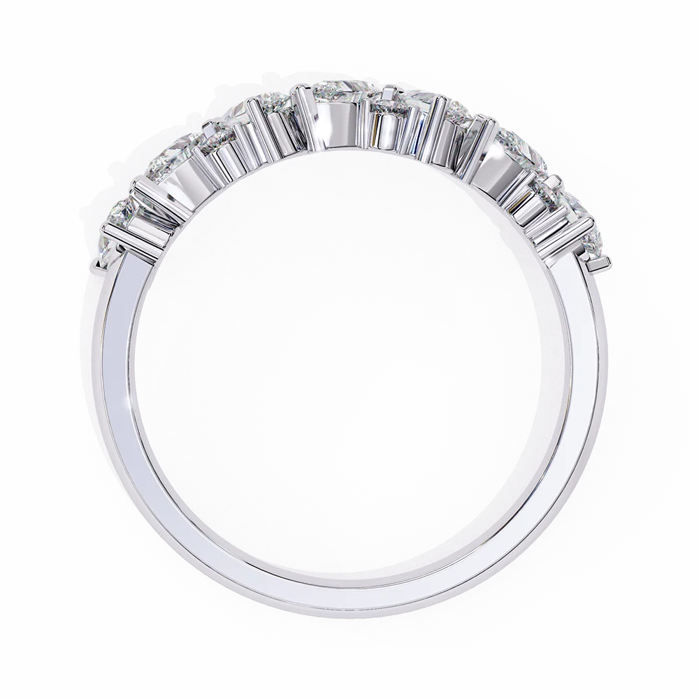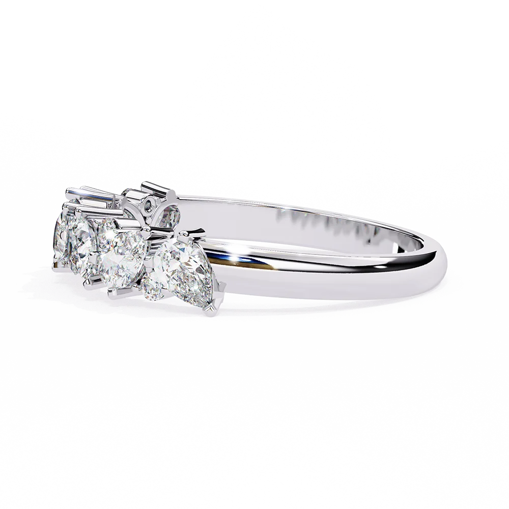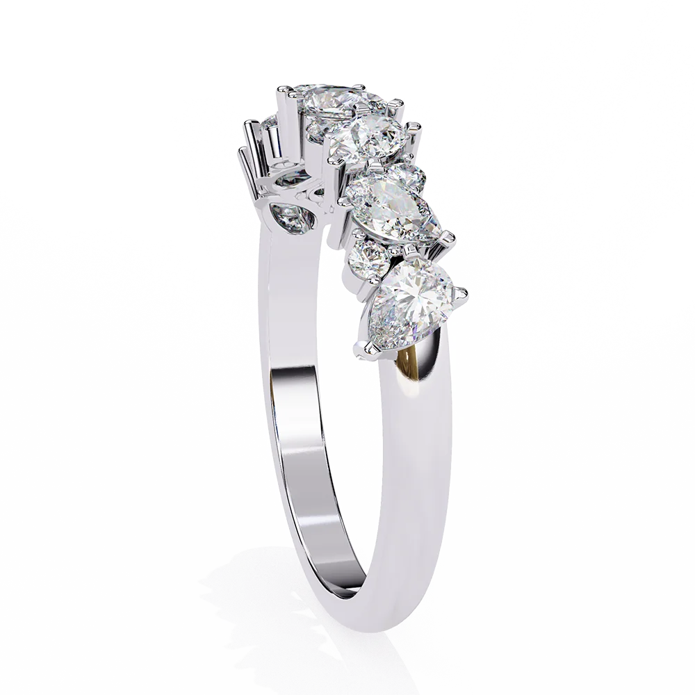 Band featuring alternation of round and Pear diamonds.