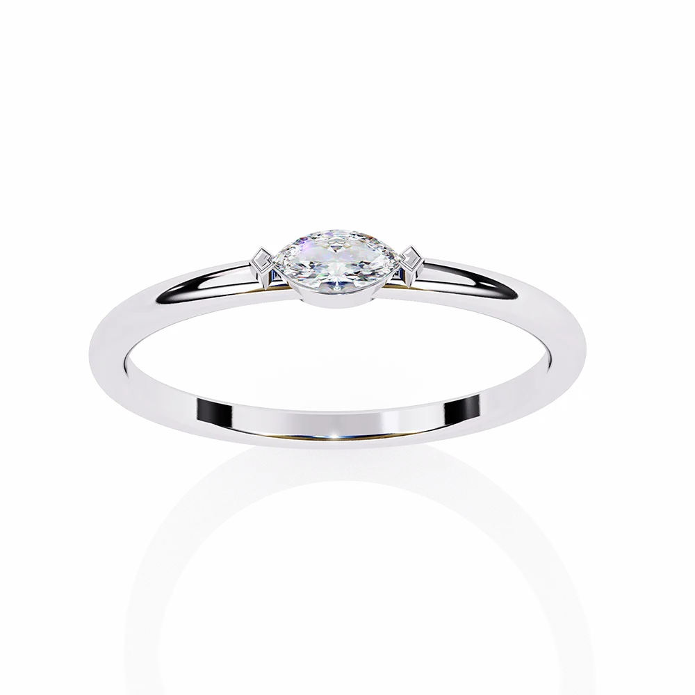 Lightweight diamond ring have a small marquise diamond.
