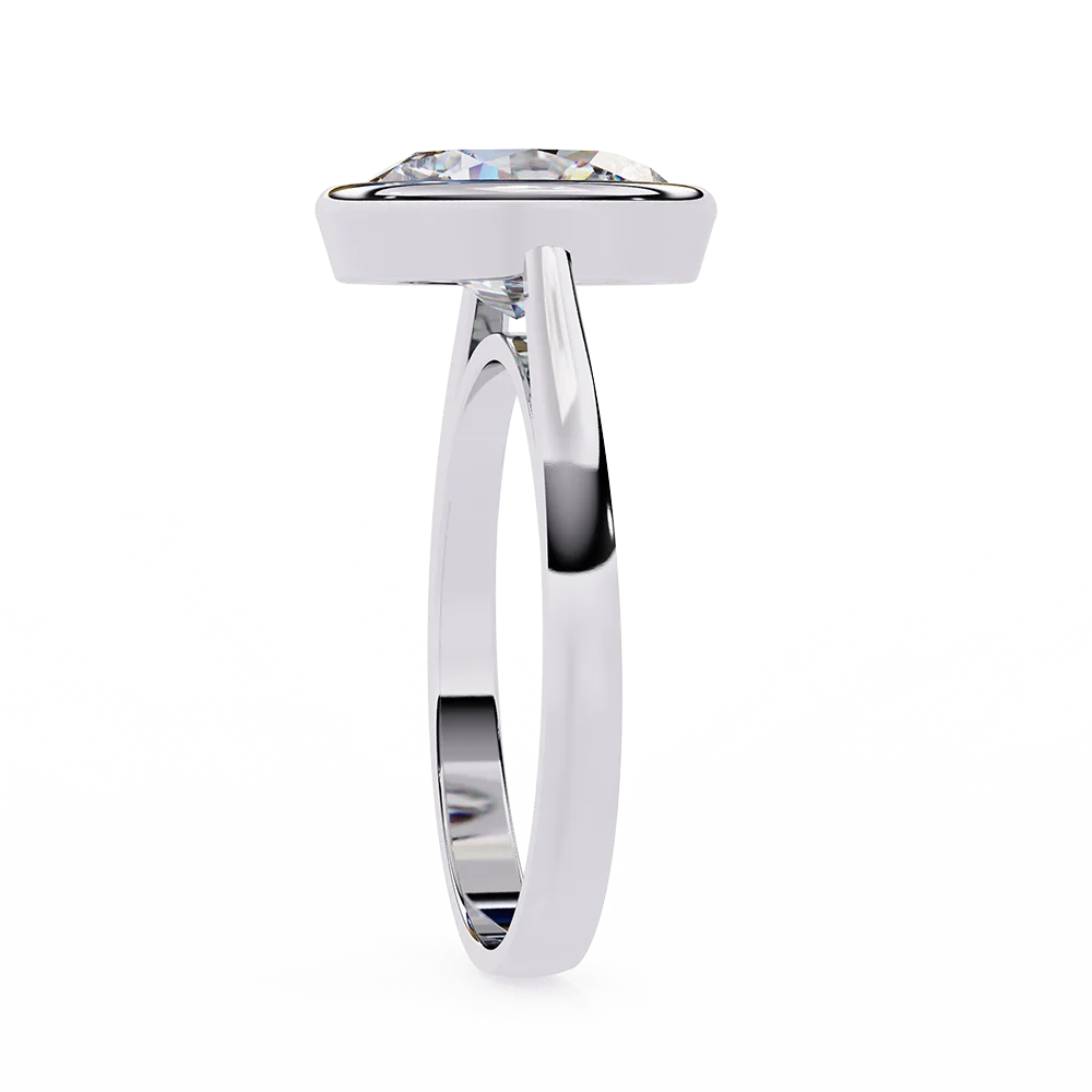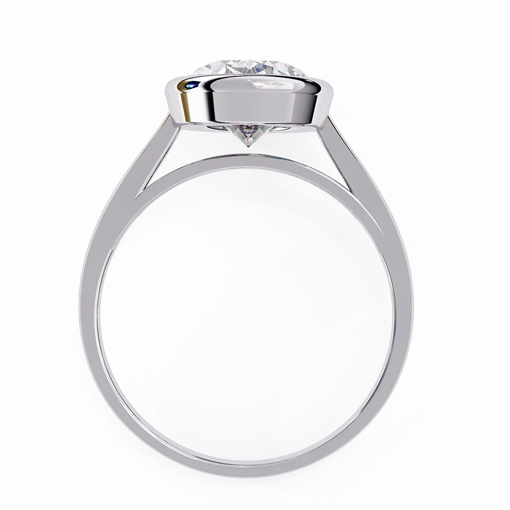 An oval diamond encased in a sleek bezel setting on a polished band.