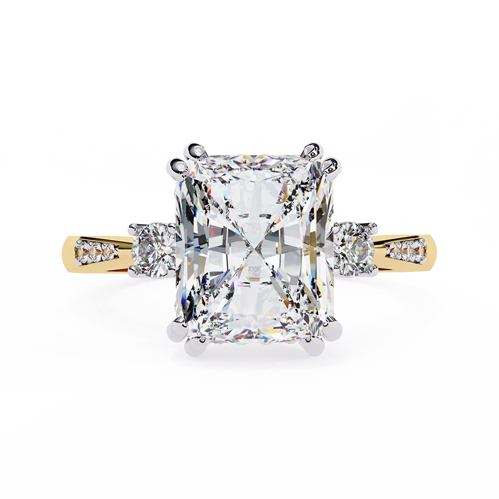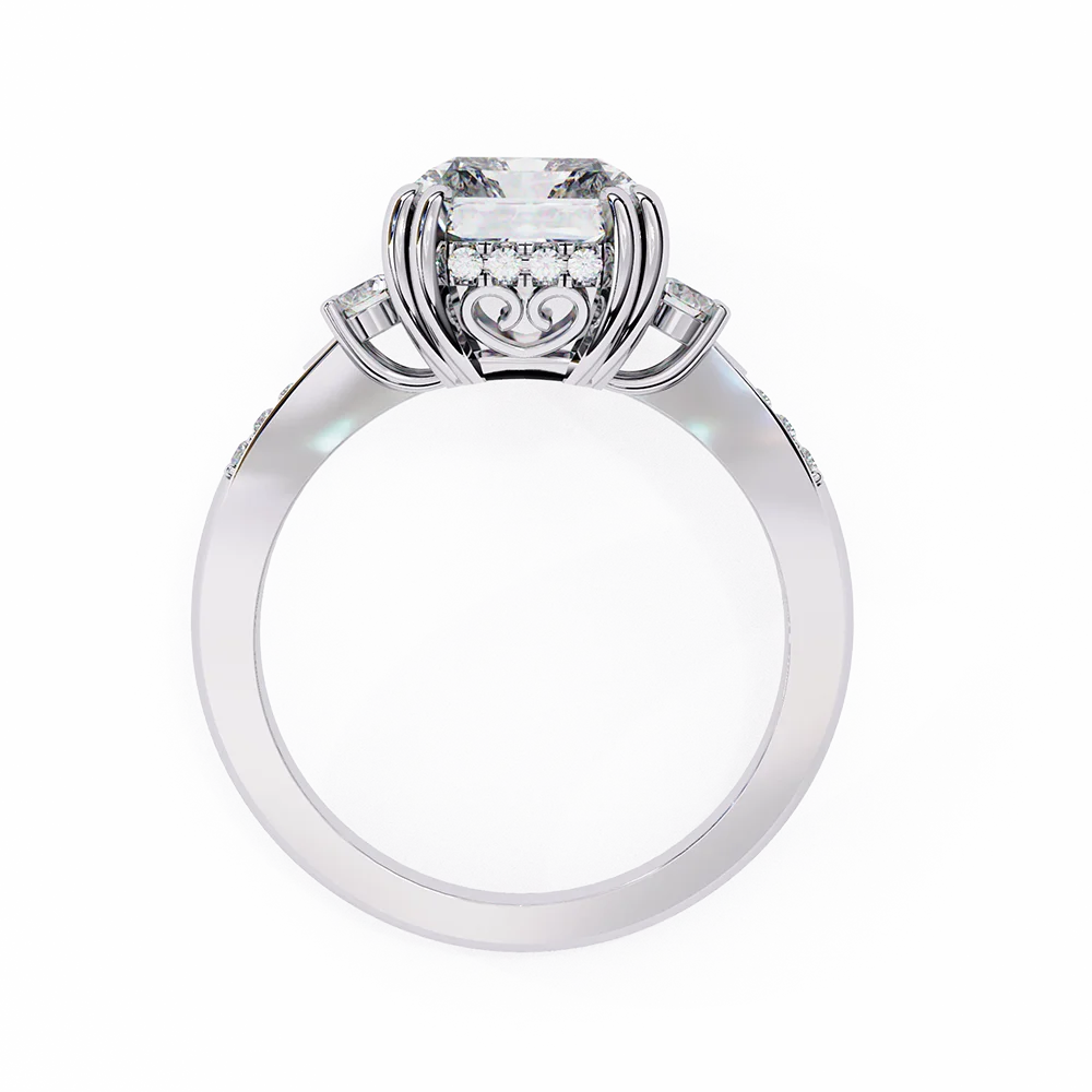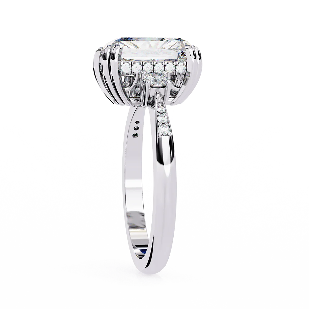 Fancy radiant solitaire adorned with diamonds all over for full sparkle.