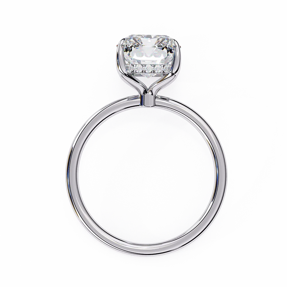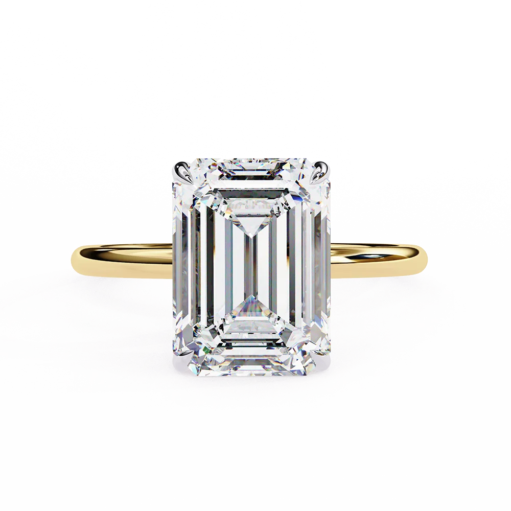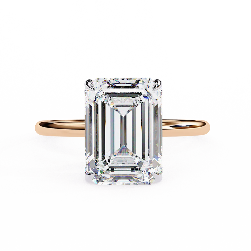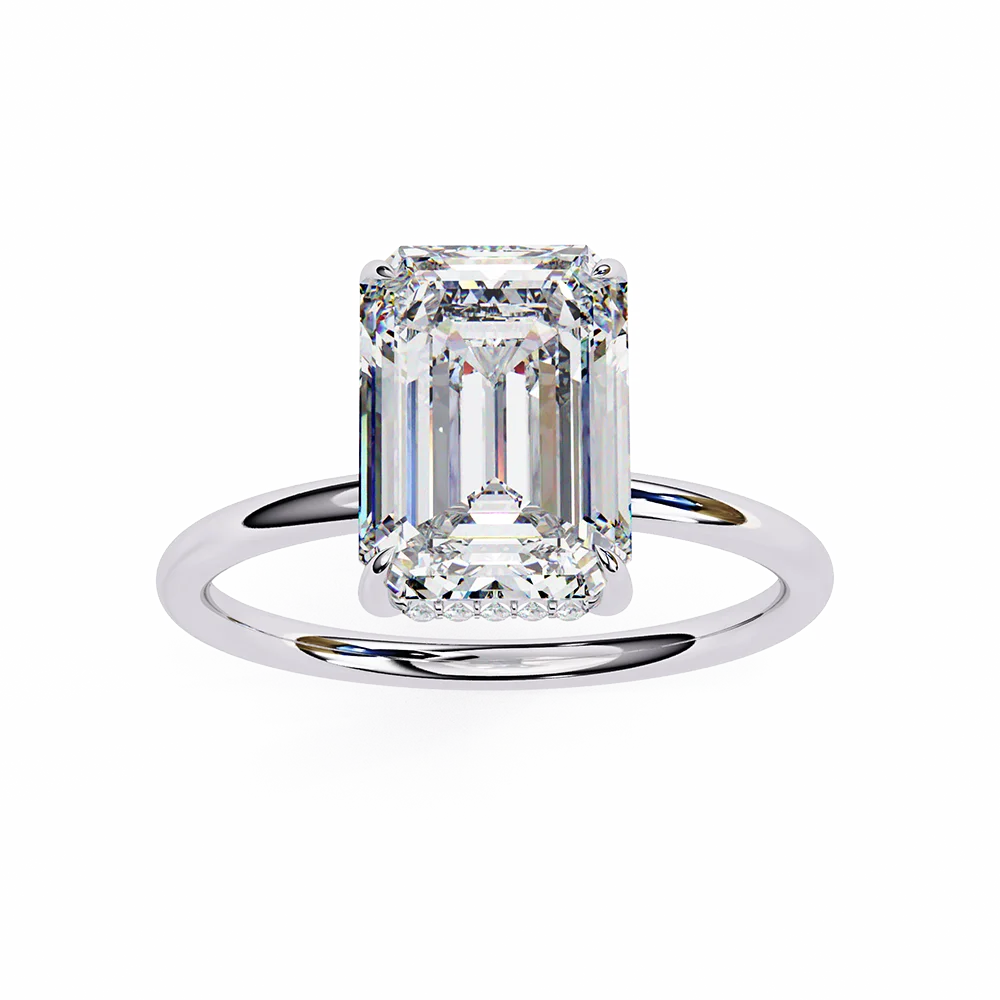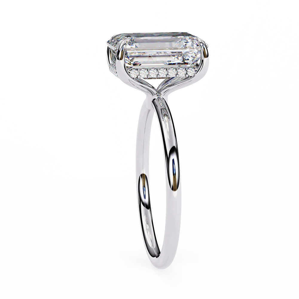 Emerald-cut solitaire Ring with a diamond-studded collet radiating timeless elegance.