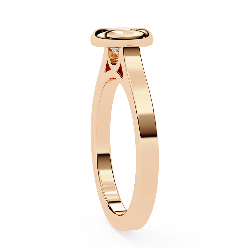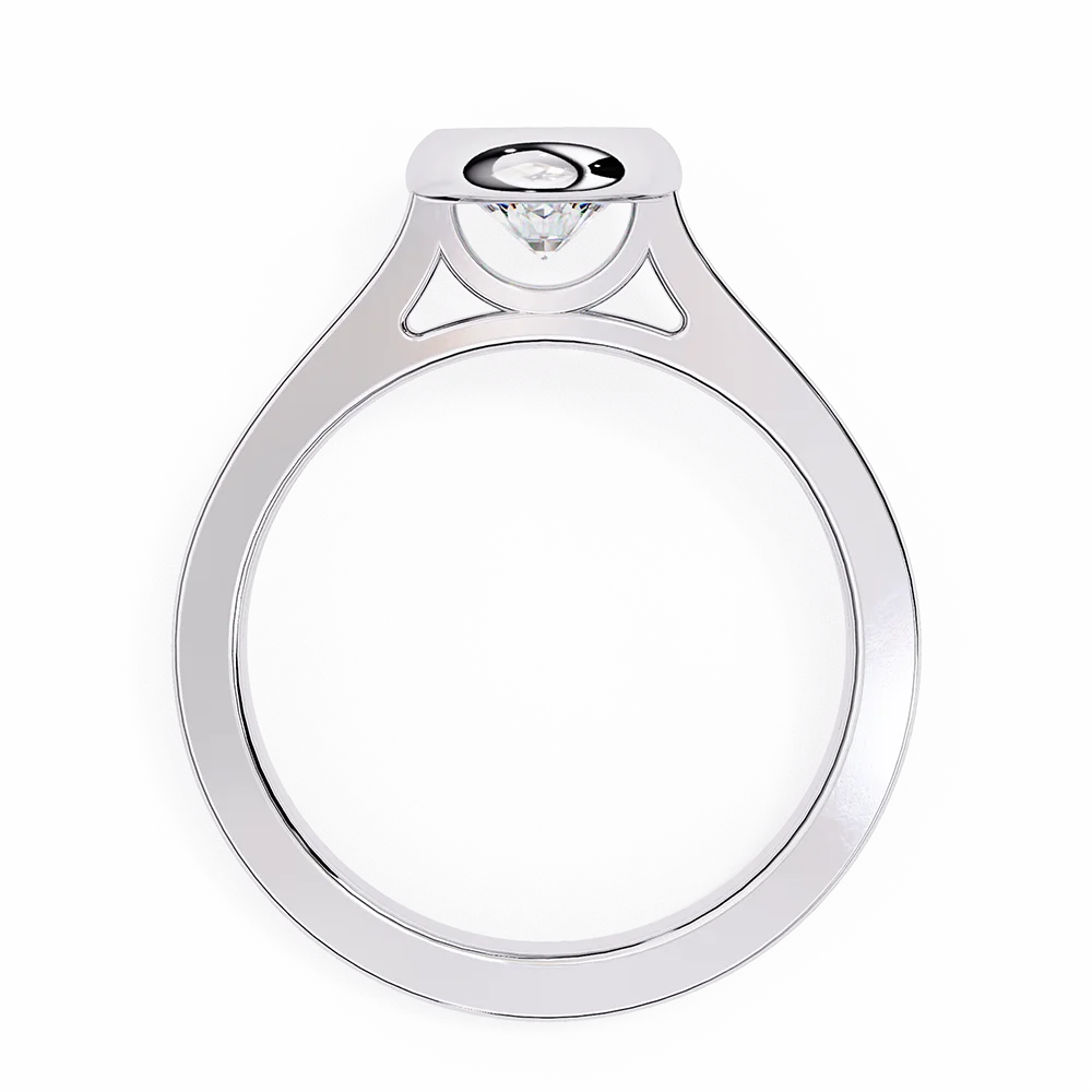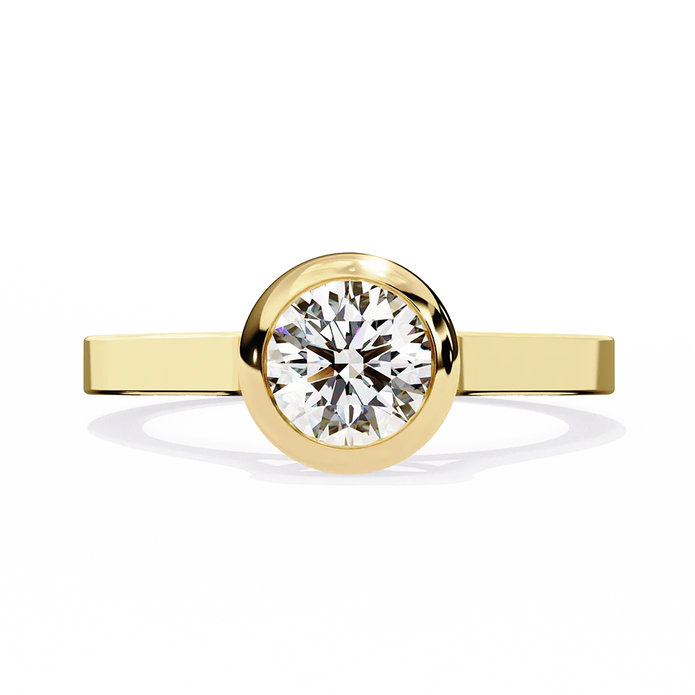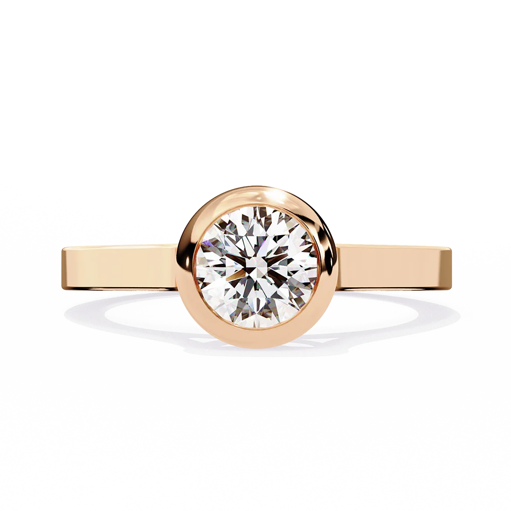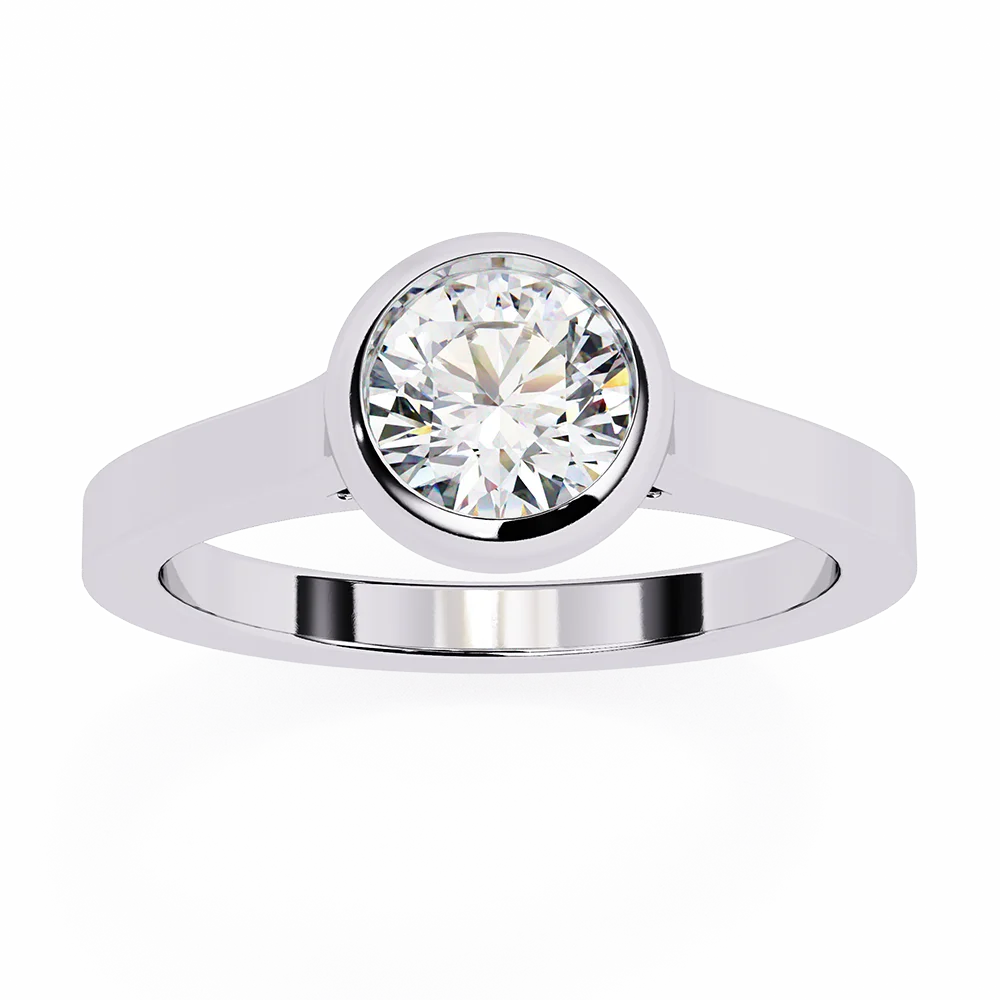 Round solitaire set in a bezel-style band, highlighting the central diamond.