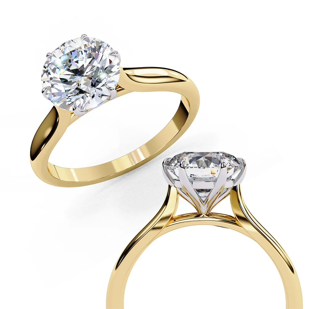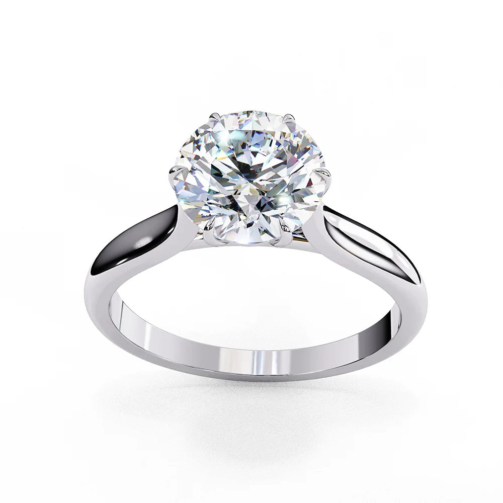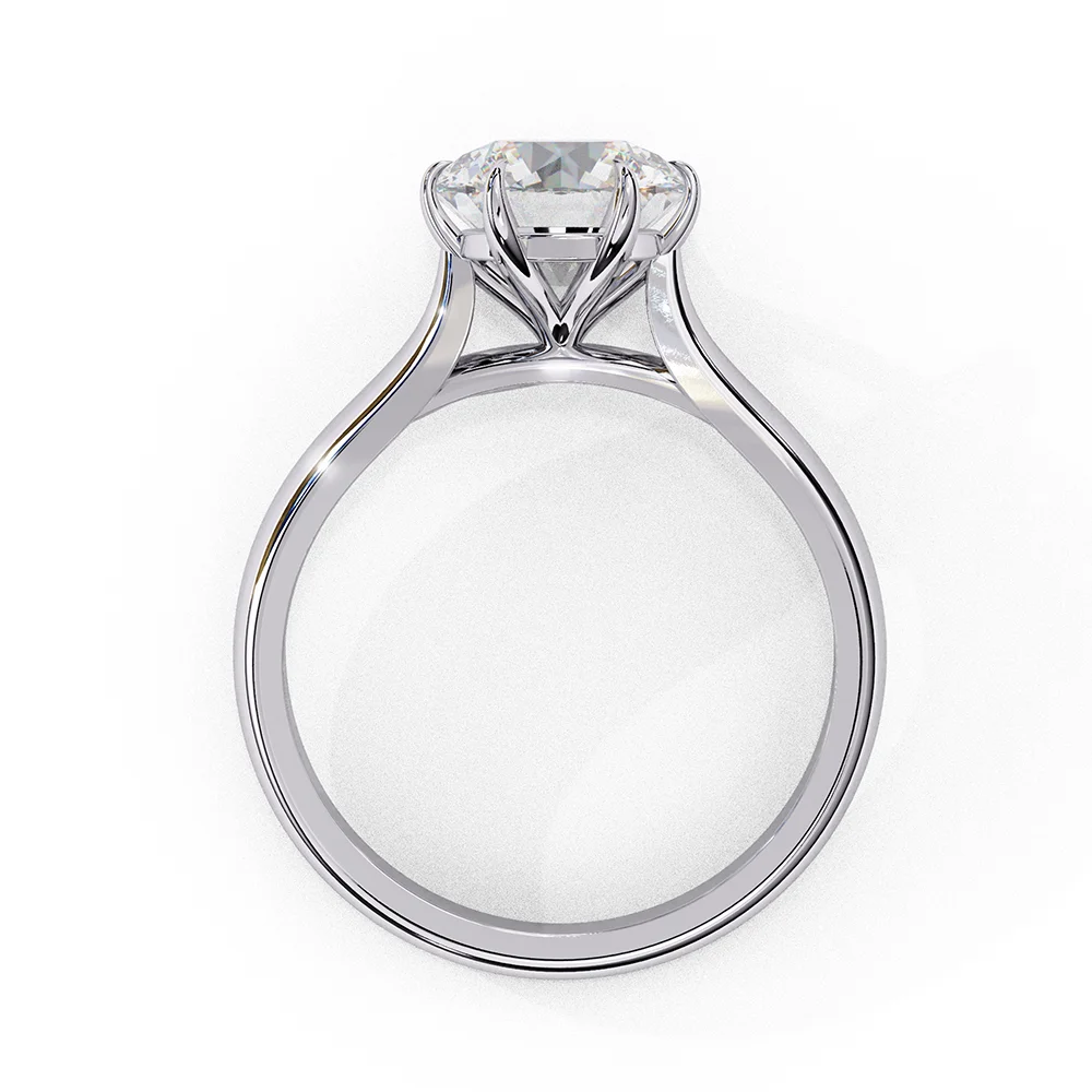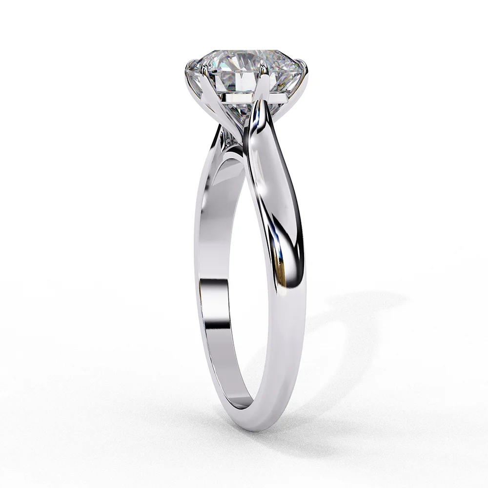 Round solitaire on a plain polished band, accentuating geometric simplicity.